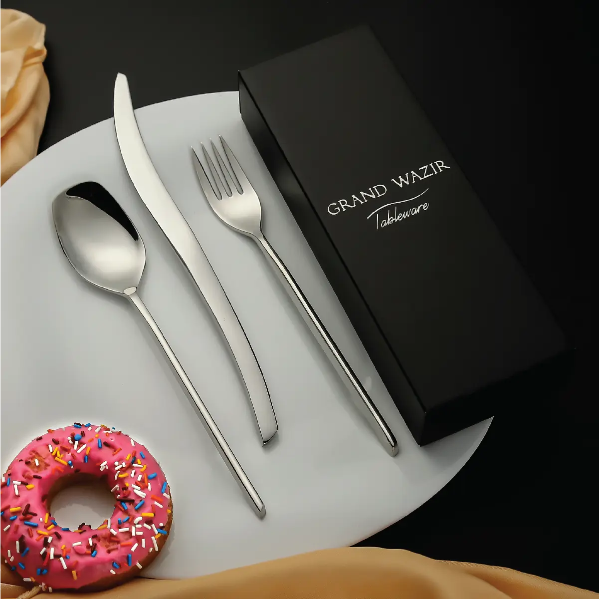 Celebrate the art of fine dining with Grand Wazir Tableware, crafted to add sophistication and charm to every table. Presented in a luxurious gift box, our cutlery sets make the ideal present for weddings, anniversaries, housewarmings, or festive occasions. With a perfect balance of style and durability, Grand Wazir transforms everyday meals into memorable experiences—making it more than just tableware, but a gift of elegance that lasts.